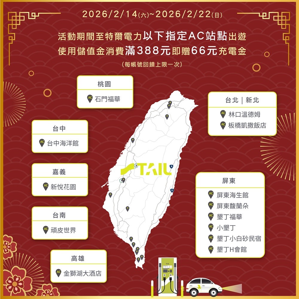 🔹活動地點: 特爾電力指定 AC 充電站點。