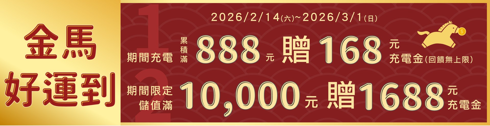 🔹活動內容: 活動期間於全台特爾電力站點充電累積滿 $888 元,即贈 $168 元充電金。